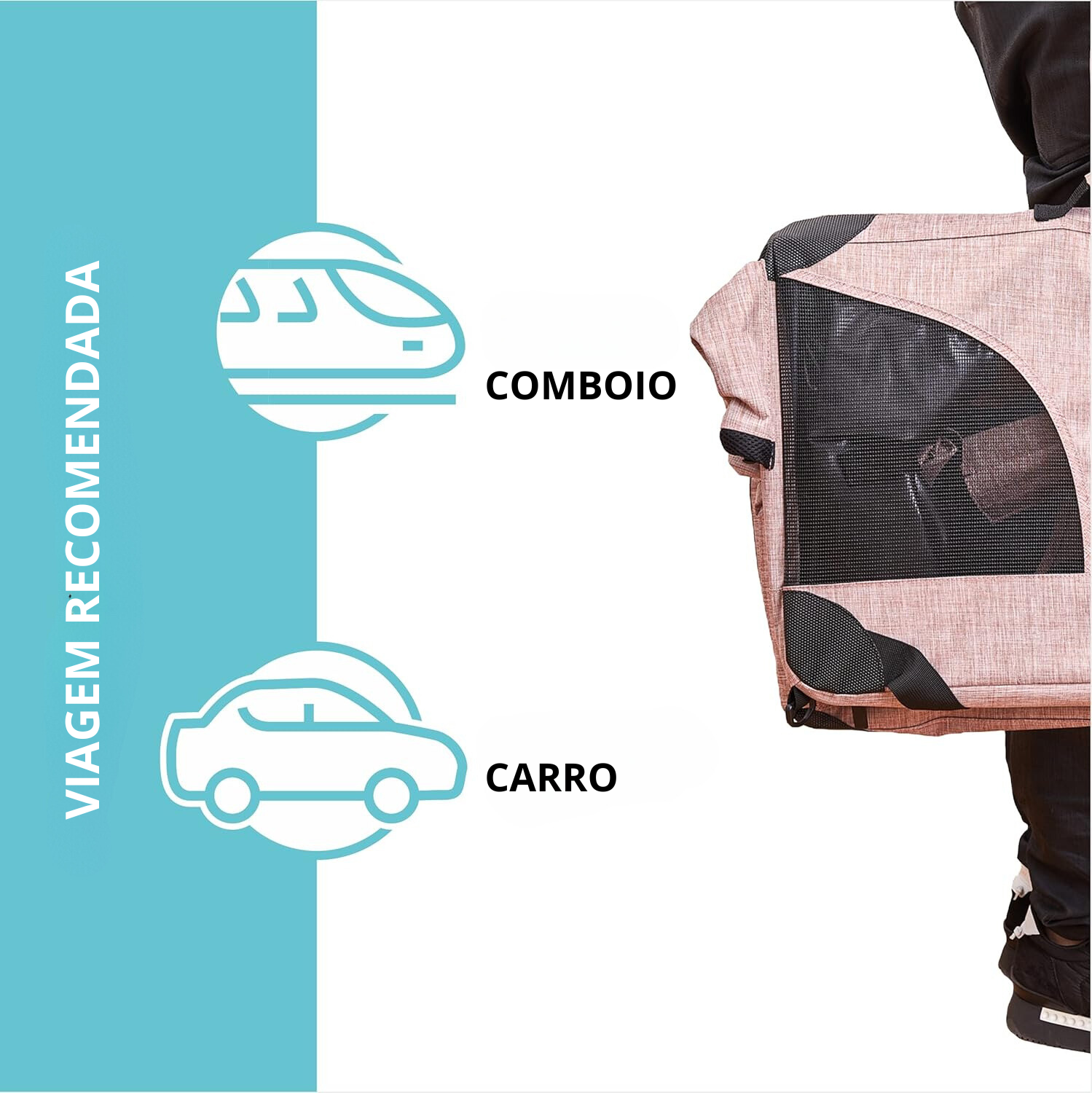 La Transportadora de Animales Confort Premium Fofos, disponible en dos tonos elegantes: rosa claro y gris, garantiza todo el confort y seguridad en el transporte de tu amigo de cuatro patas.