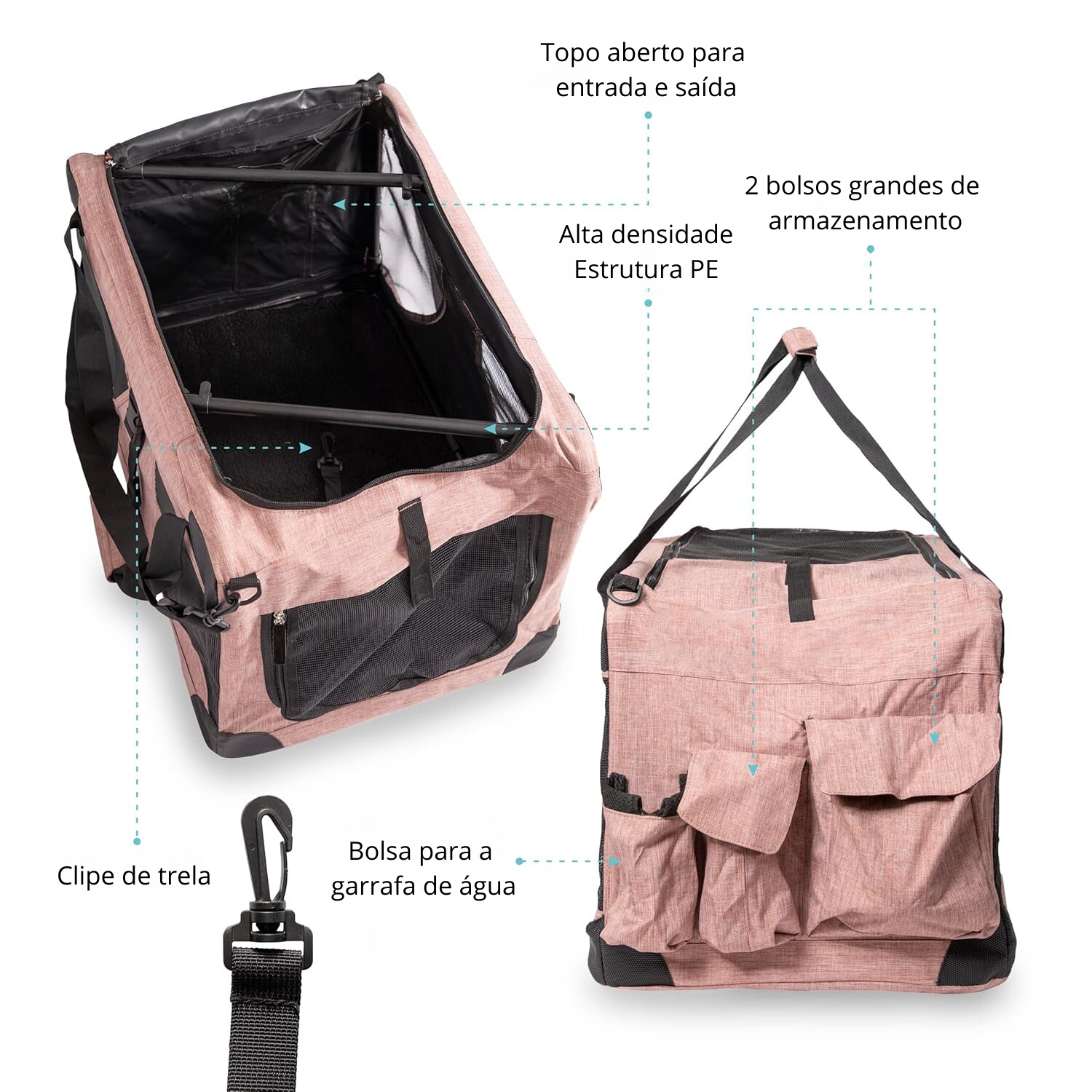 • Moderna: Elige entre rosa claro o gris y lleva a tu mascota con elegancia y comodidad.
