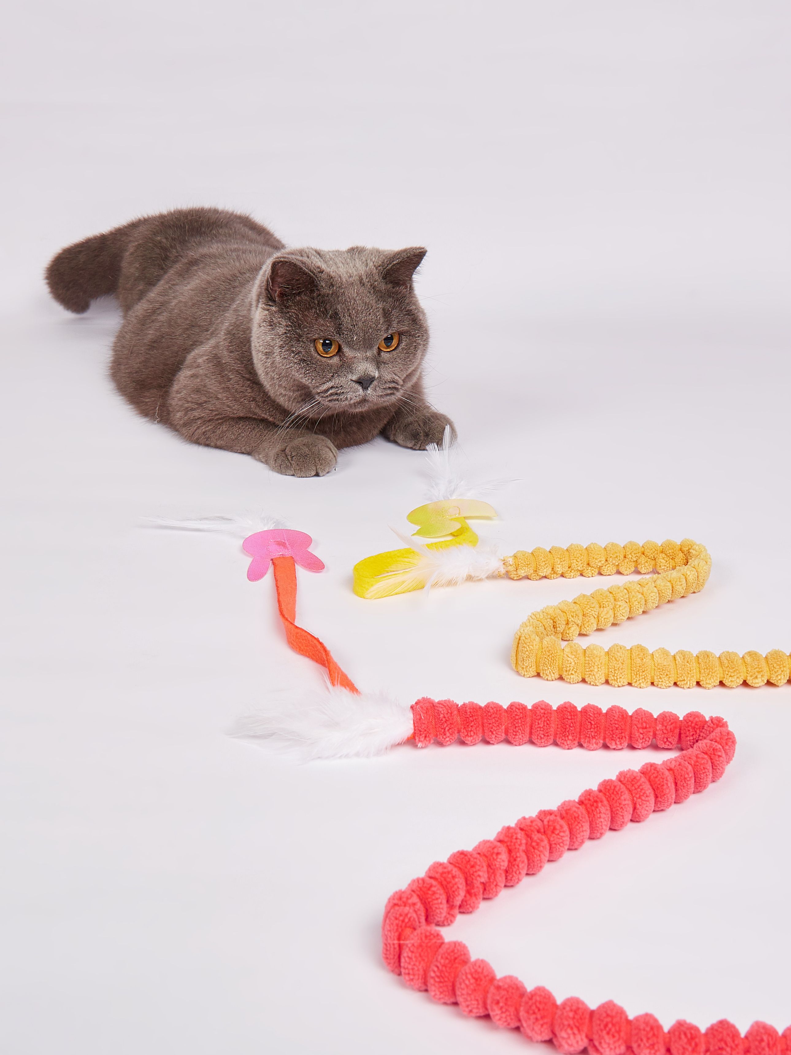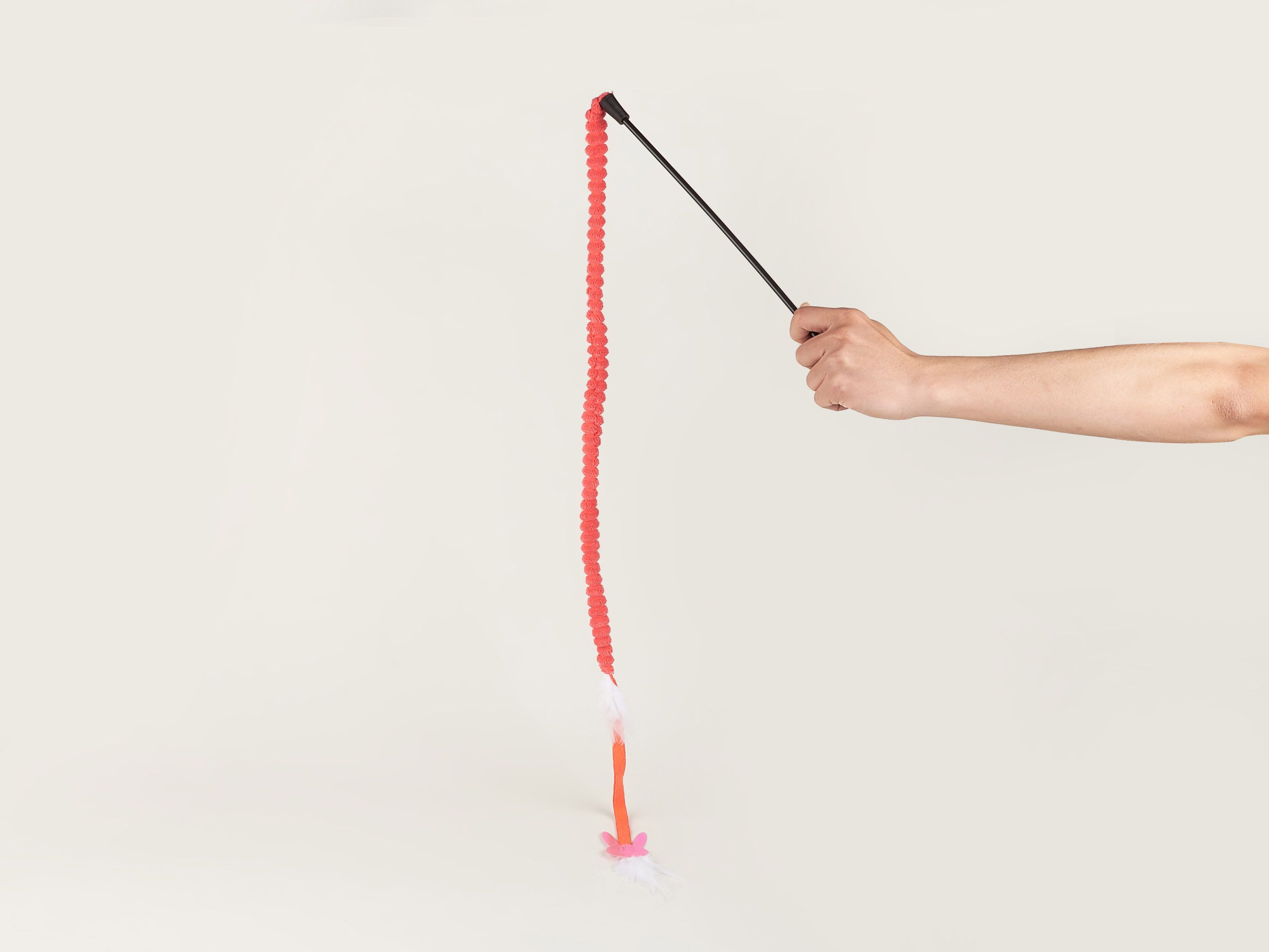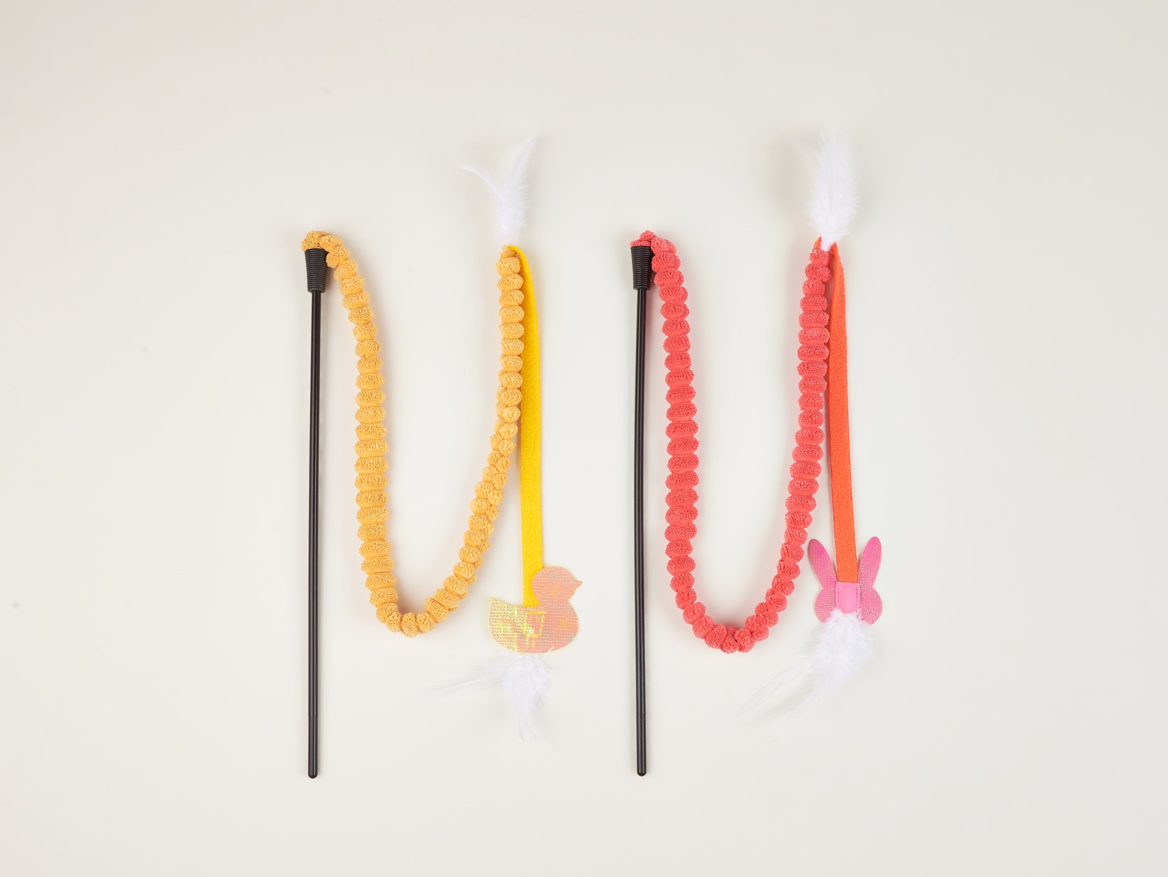 El juguete Bastón para Gato FOFOS fue diseñado para fomentar el ejercicio de tu gato de una manera divertida y atractiva. Con un cordón de tela texturizada, el juguete es perfecto para despertar el instinto de caza de tu gato y mantenerlo activo. En el extremo, encontrarás una mariposa o un pato, junto con plumas y elementos brillantes que hacen que el juego sea aún más emocionante.