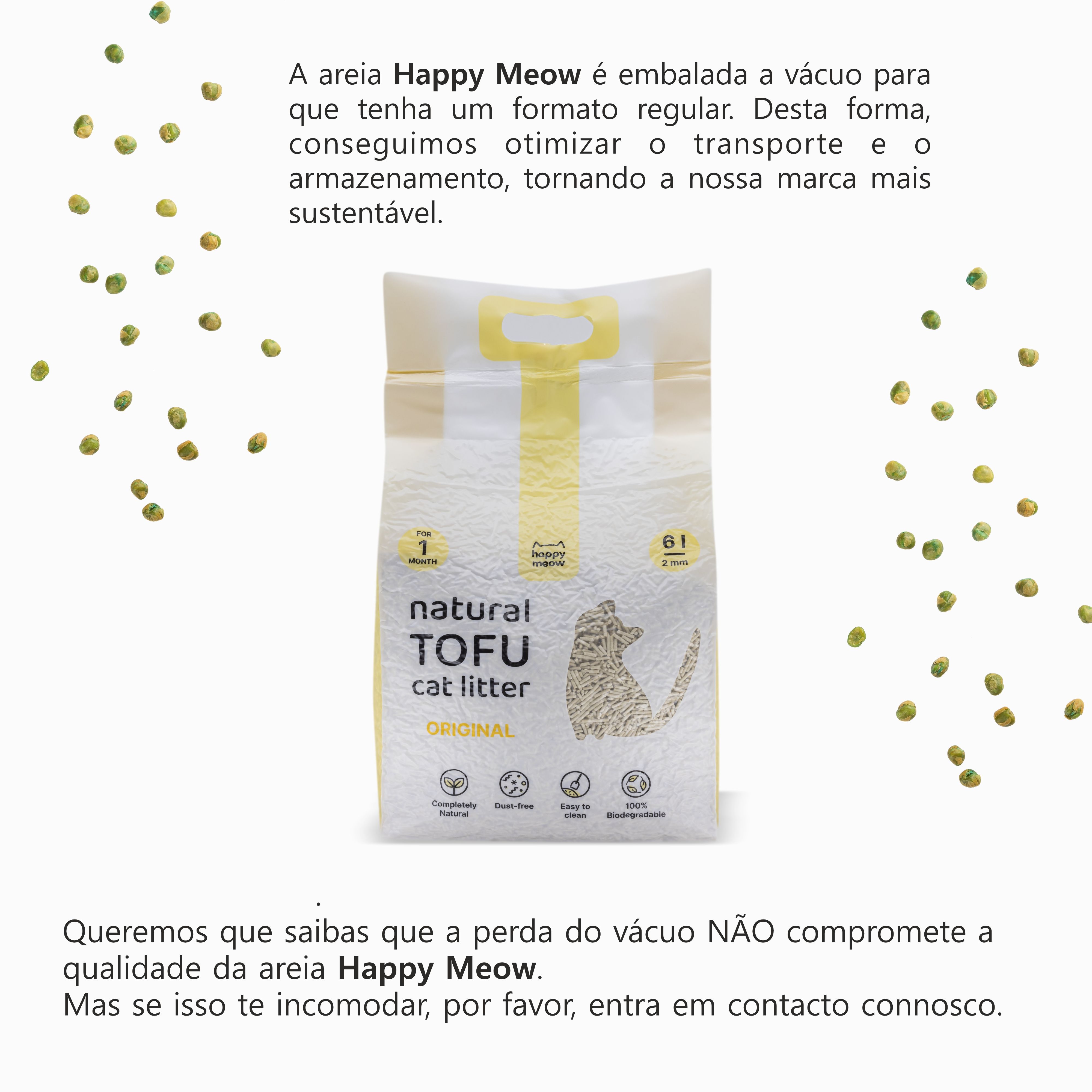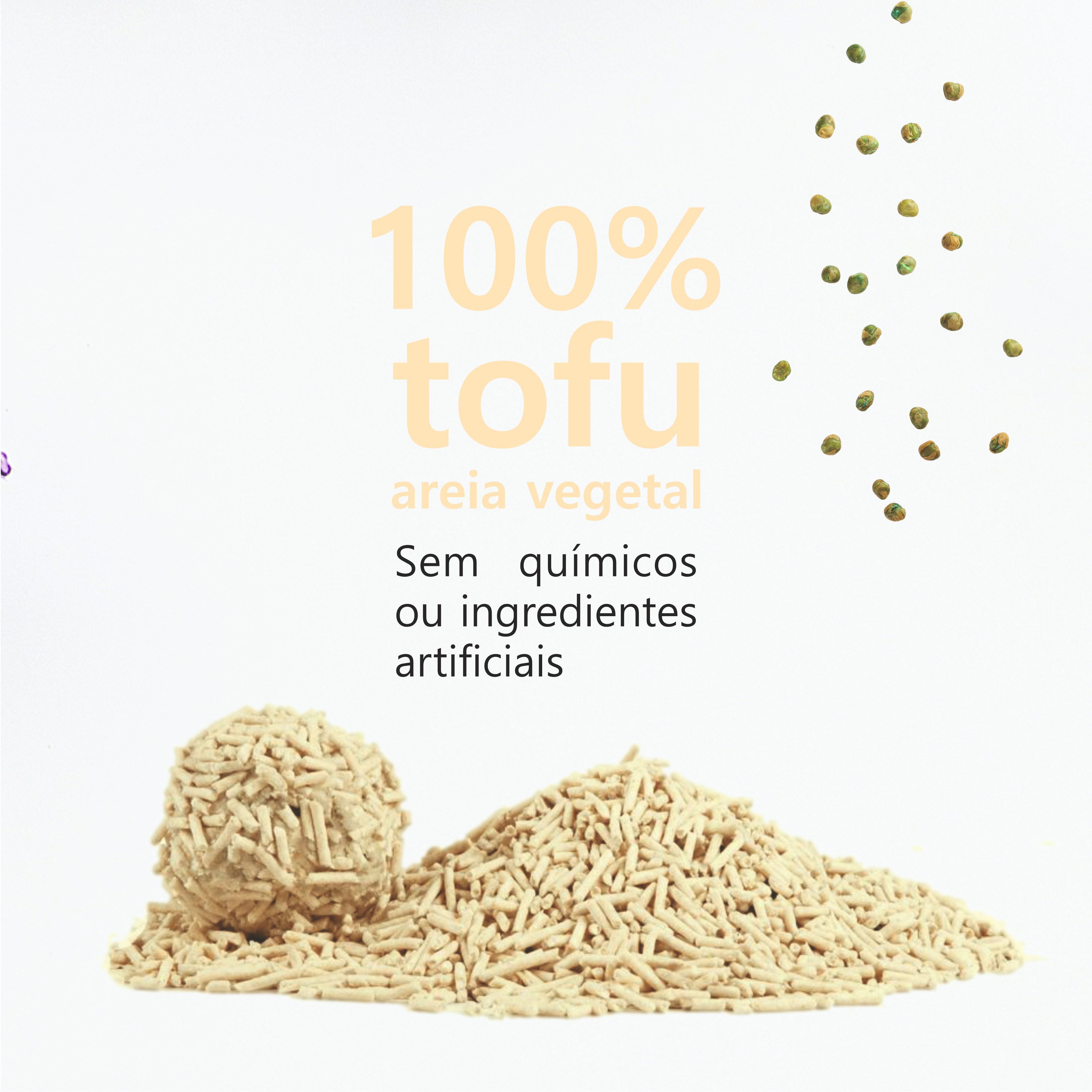A areia TOFU é um dos mais novos tipos de areia natural para gatos. É feito de fibra de ervilha 100% natural, sem quaisquer químicos nocivos adicionados. A areia TOFU absorve rapidamente a humidade, tem função aglomerante e neutraliza odores desagradáveis. Além disso, é extremamente suave para as patas sensíveis do seu gato.