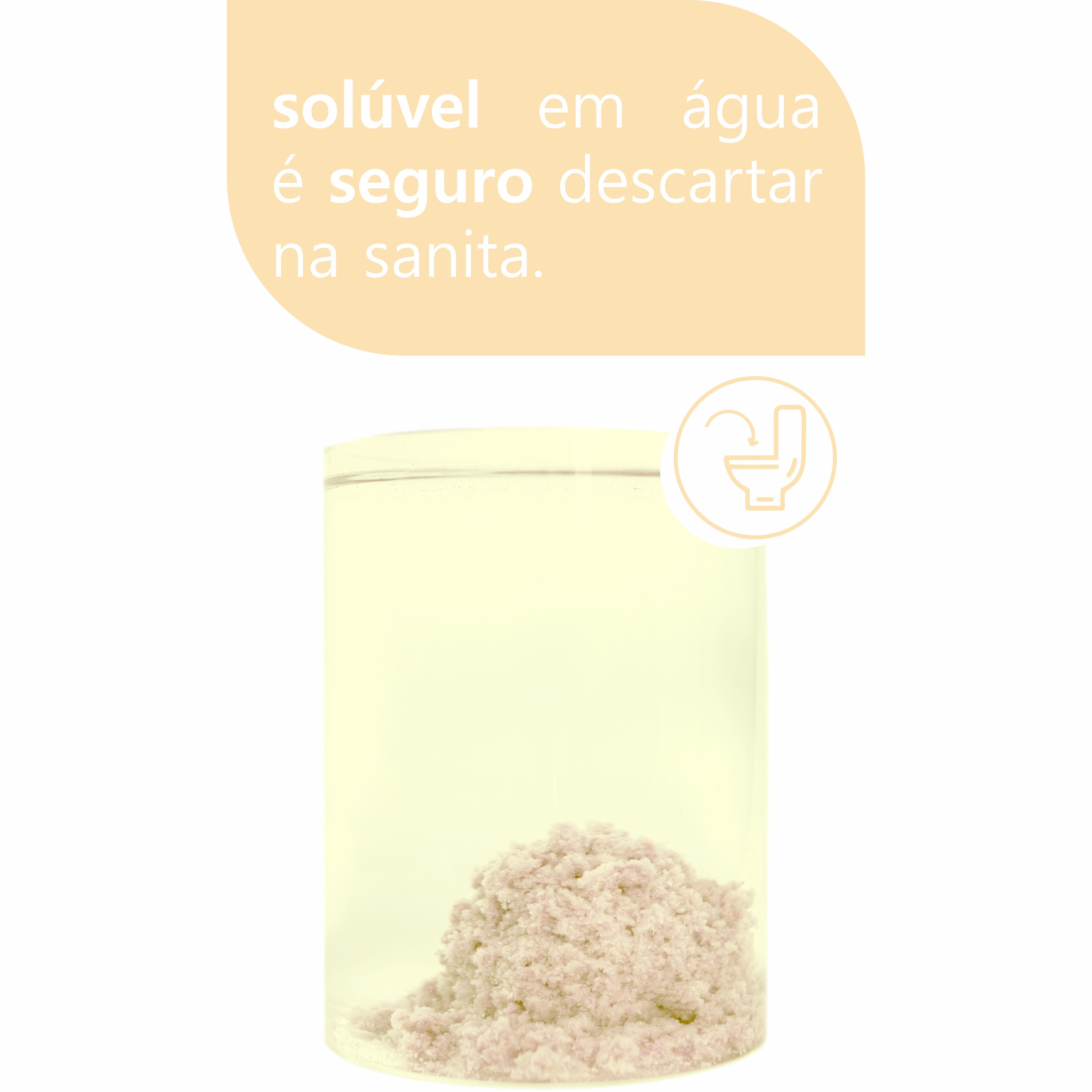 Devido à sua composição natural, a areia é biodegradável e solúvel em água. Pode ser descartada com segurança numa sanita.