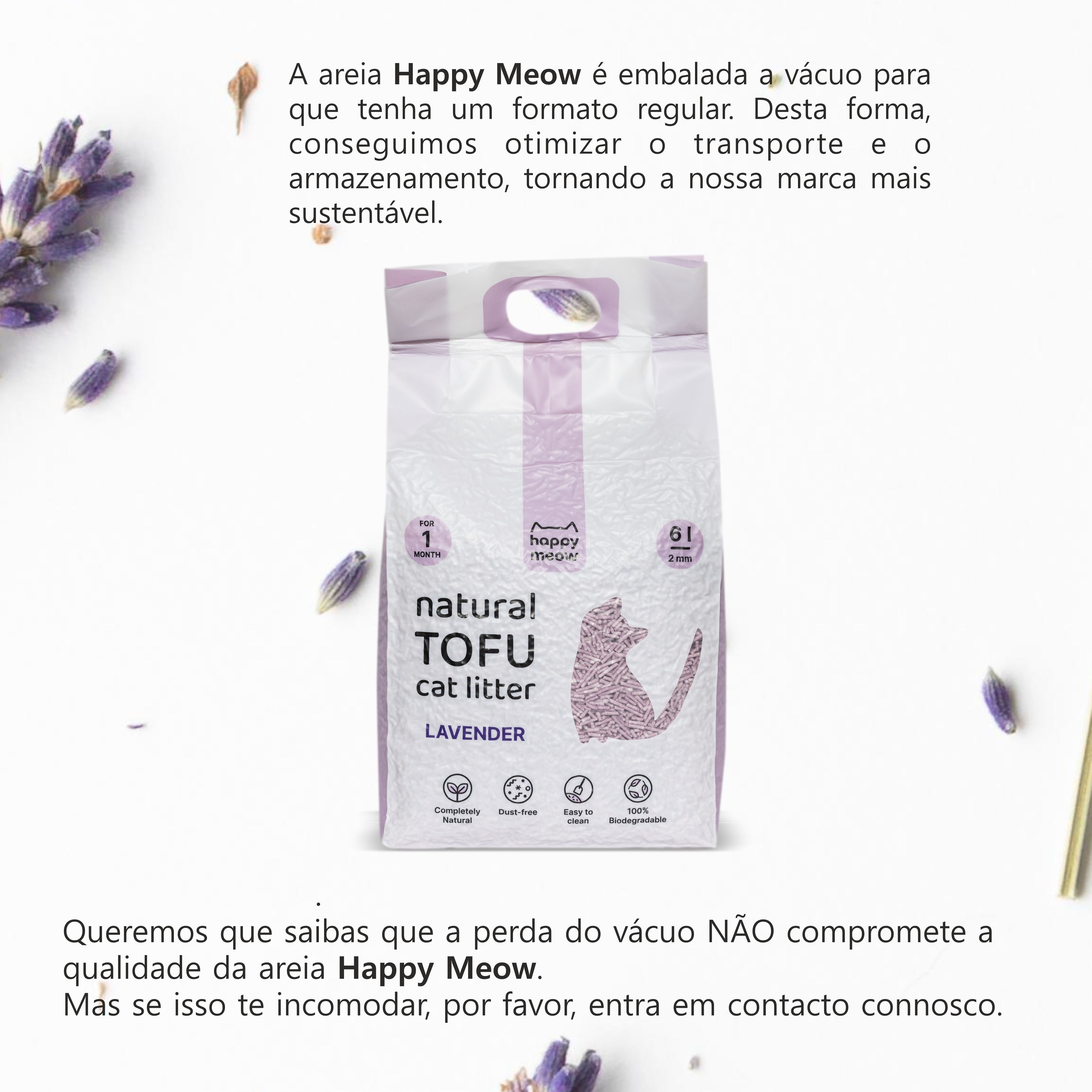 A areia TOFU é um dos mais novos tipos de areia natural para gatos. É feito de fibra de ervilha 100% natural, sem quaisquer químicos nocivos adicionados. A areia TOFU absorve rapidamente a humidade, tem função aglomerante e neutraliza odores desagradáveis. Além disso, é extremamente suave para as patas sensíveis do seu gato.