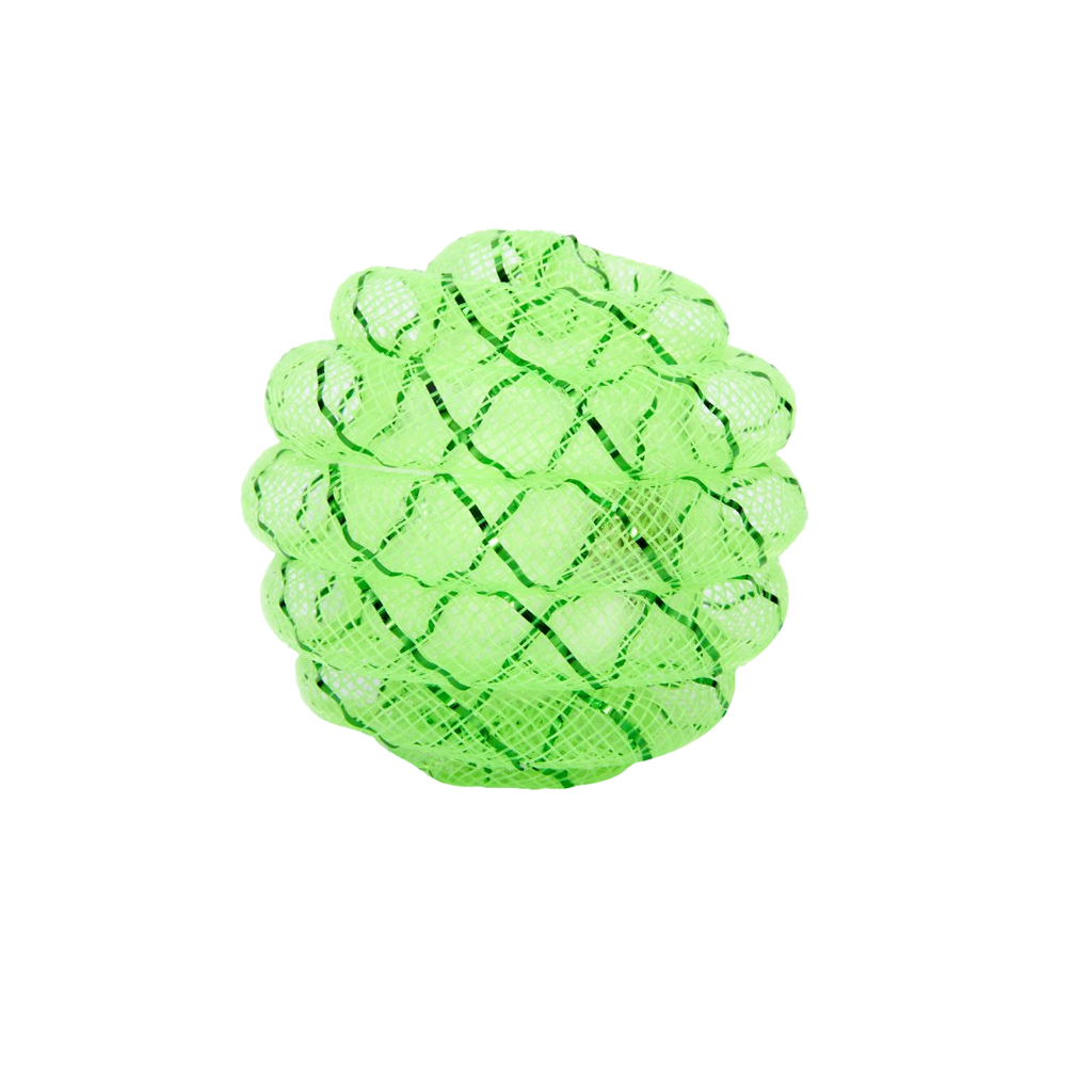 Estas bolas brilhantes têm um design único que não encontrará em mais lado nenhum. A superfície lisa da rede permite que a bola role com muito mais facilidade e distância do que as tradicionais bolas brilhantes com pompons de enfeites, permitindo maior jogabilidade.