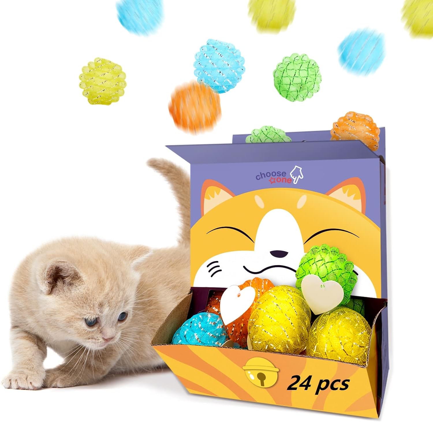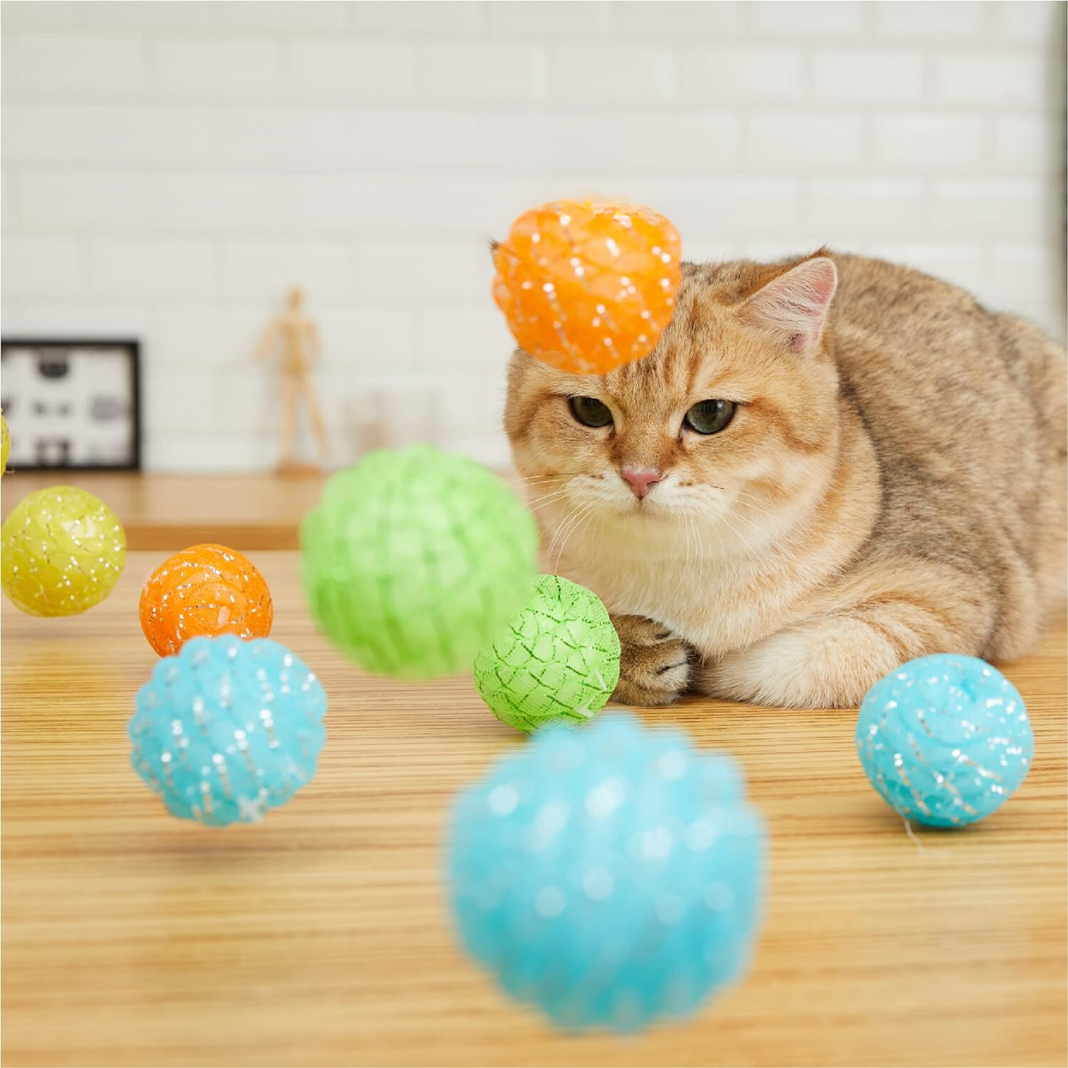 Essas bolas de rede são feitas de plástico livre de tóxicos, que são elásticos e resistentes a mordidas e lutas violentas de gatos. As riscas brilhantes anexadas são bem fixadas para que não saiam facilmente.