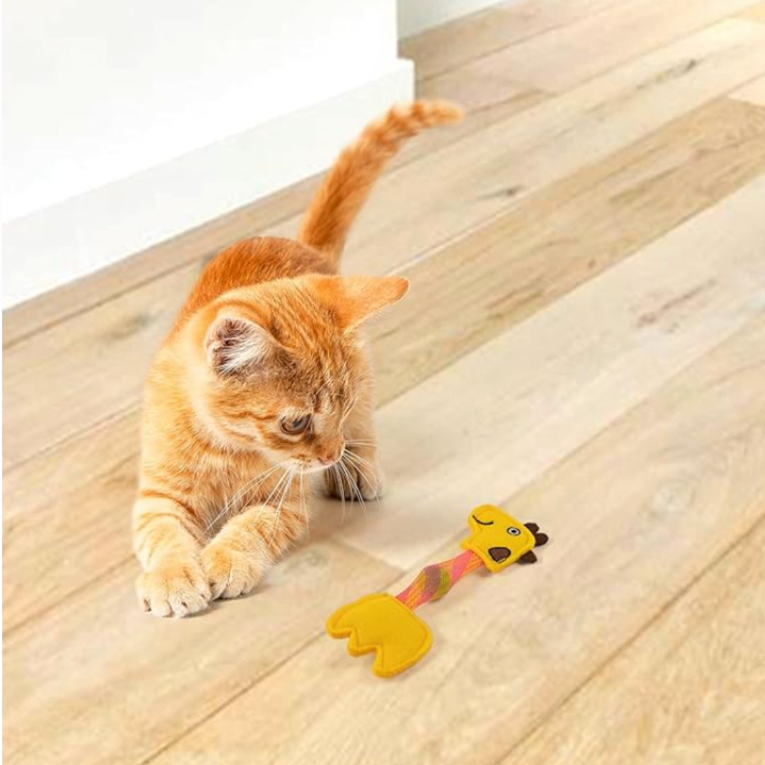 Design Divertido: Brinquedo em formato de girafa, com cores vibrantes que atraem a atenção do seu gato.