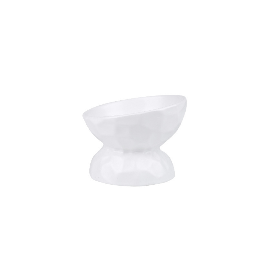 Taça Cerâmica Inclinada com Efeito Ondulado, com capacidade de 200ml, ideal para proporcionar uma experiência de alimentação confortável e saudável para o seu gato. O formato inclinado ajuda a reduzir a pressão no pescoço e facilita a digestão, enquanto o acabamento em branco e o design ondulado oferecem um toque decorativo sofisticado e neutro.