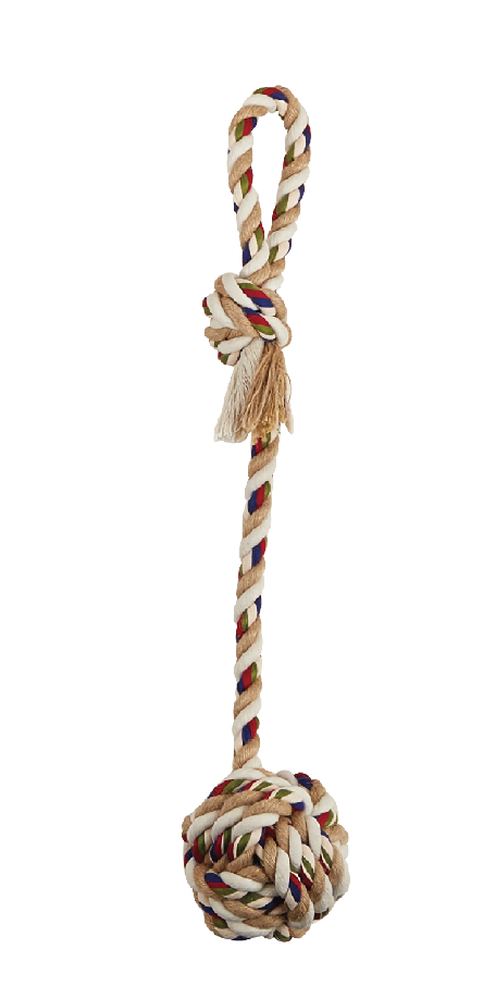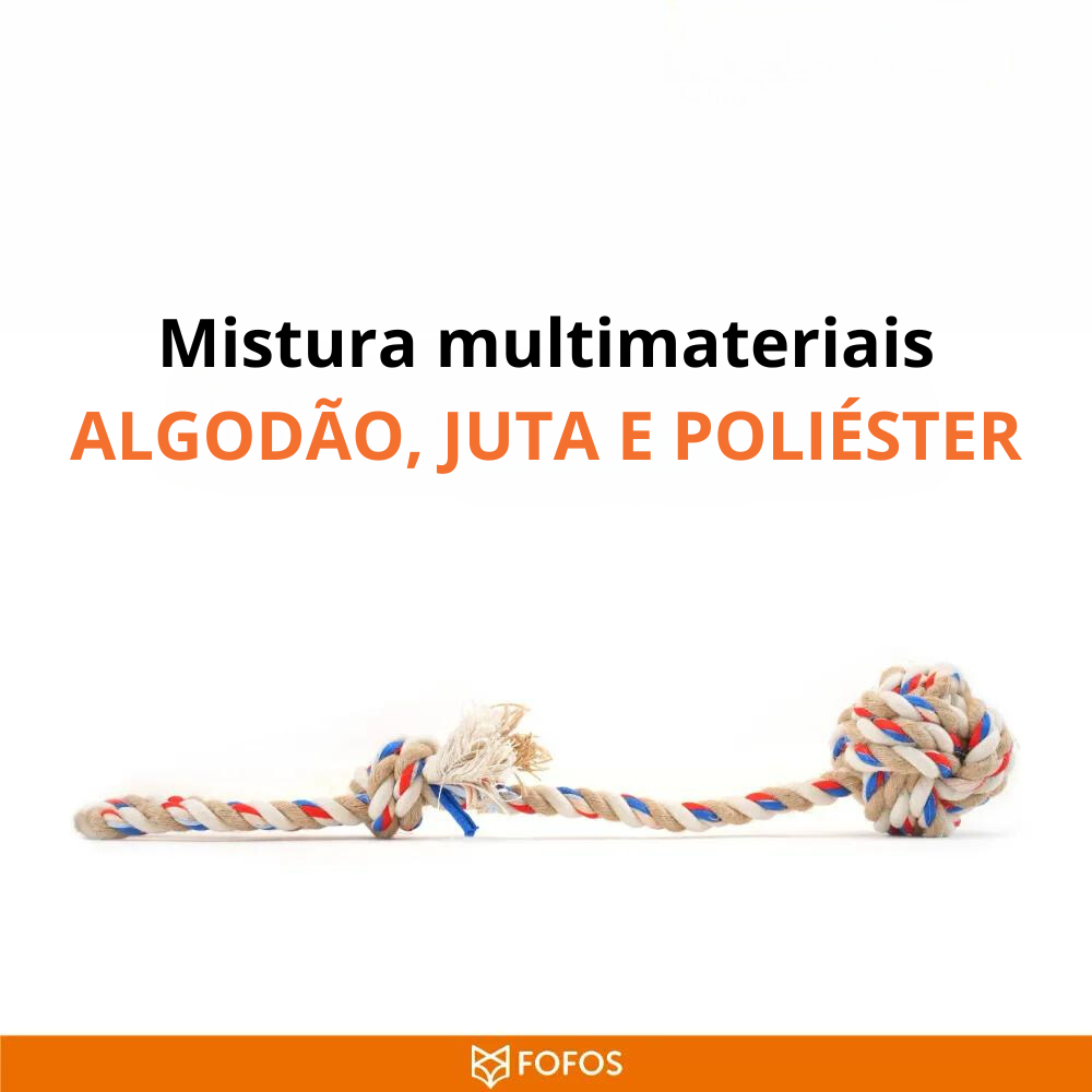 O FOFOS Corda com Bola Entrançada é ideal para jogos de força e brincadeiras interativas com o teu cão. Este brinquedo robusto apresenta uma pega num extremo e uma bola entrançada no outro, oferecendo uma experiência divertida e segura tanto para ti como para o teu cão. Disponível nas cores bege, vermelho, azul e branco, é perfeito para brincadeiras de cabo de guerra e jogos de força. Feito de uma mistura durável de algodão, poliéster e juta, o brinquedo garante durabilidade, mesmo durante as brincadeiras mais intensas.