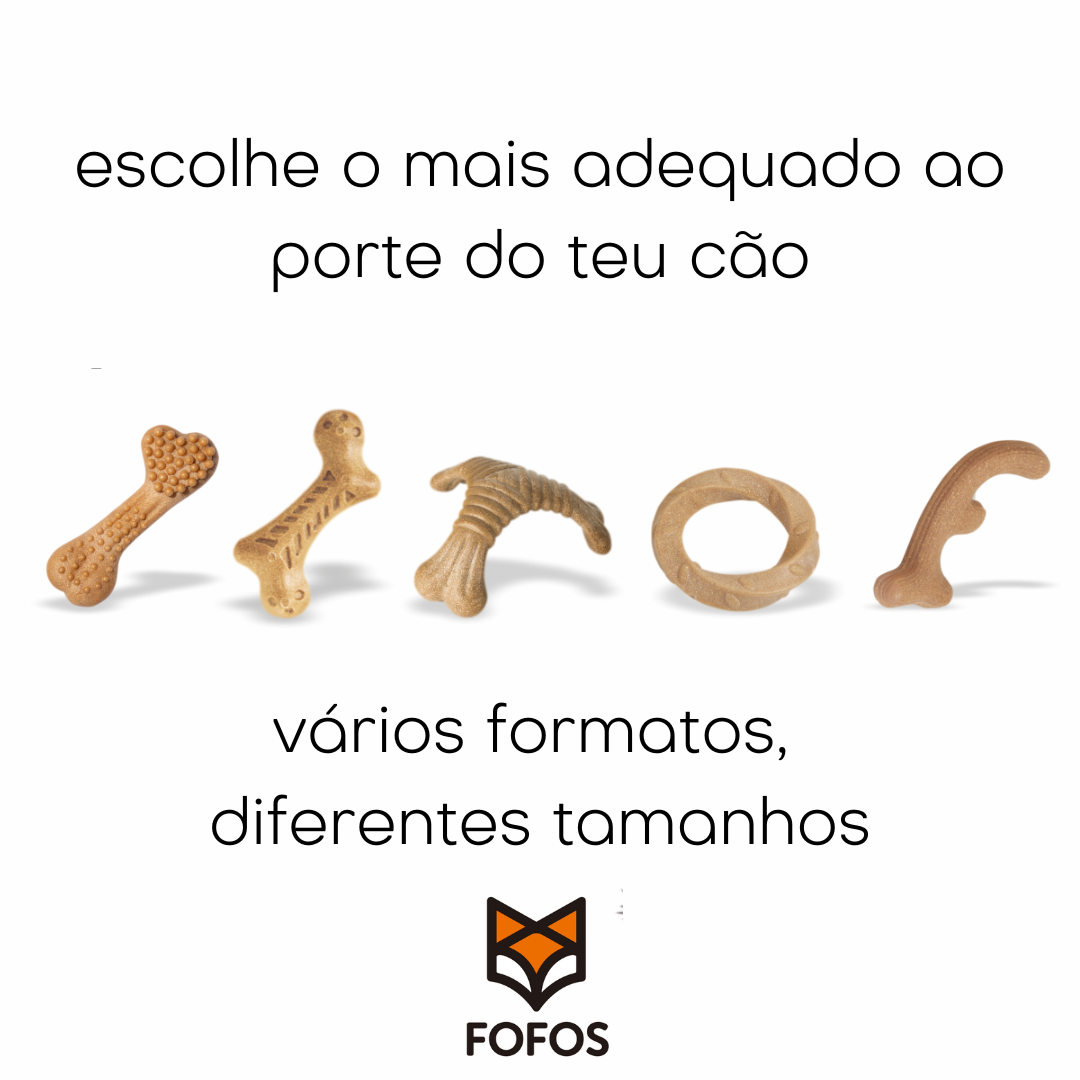 Este brinquedo resistente é fabricado com fibras de madeira mastigável, o que o torna um excelente substituto para os objetos de mastigação tradicionais, proporcionando o equilíbrio certo entre diversão e exercício. É ideal para raças como Labradores, São Bernardos e outros cães com mais de 1 ano de idade e com um estilo de mastigação moderado.