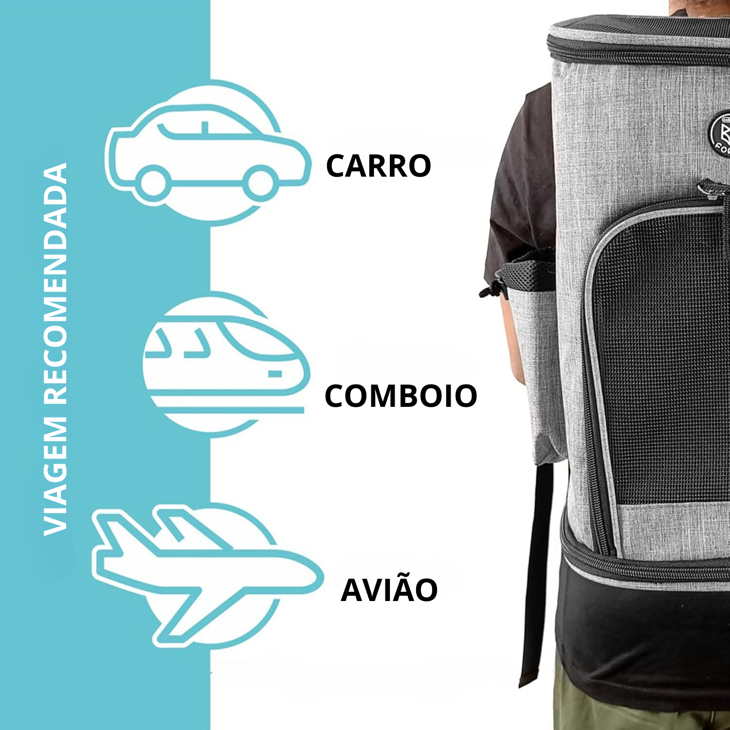 Mochila Transportadora de Animais Cinzenta FOFOS | Conforto, Segurança e Estilo para o Seu Pet