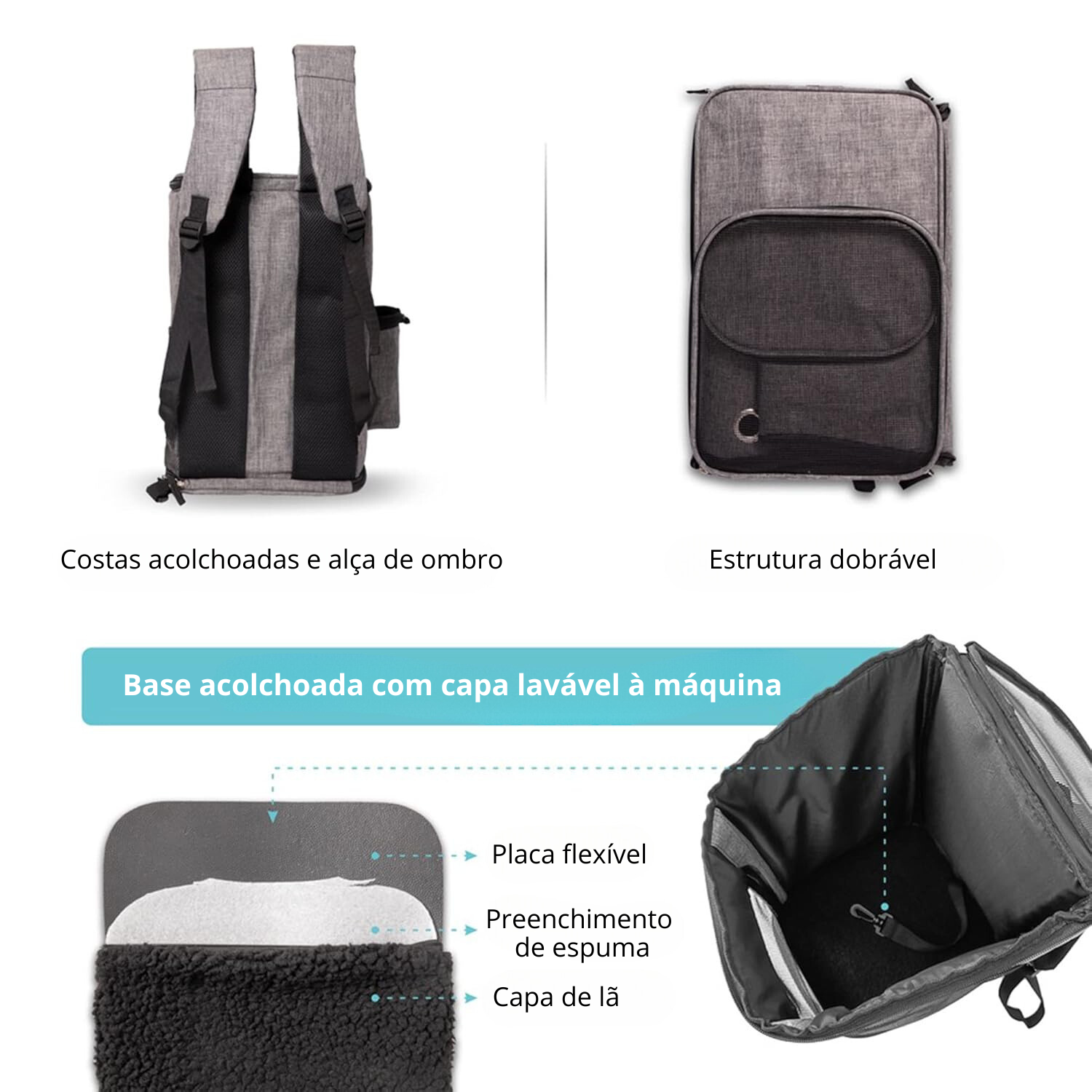 Conforto Acolchoado: O interior acolchoado proporciona um ambiente confortável e relaxante, garantindo que o seu pet se sinta seguro durante todo o trajeto.