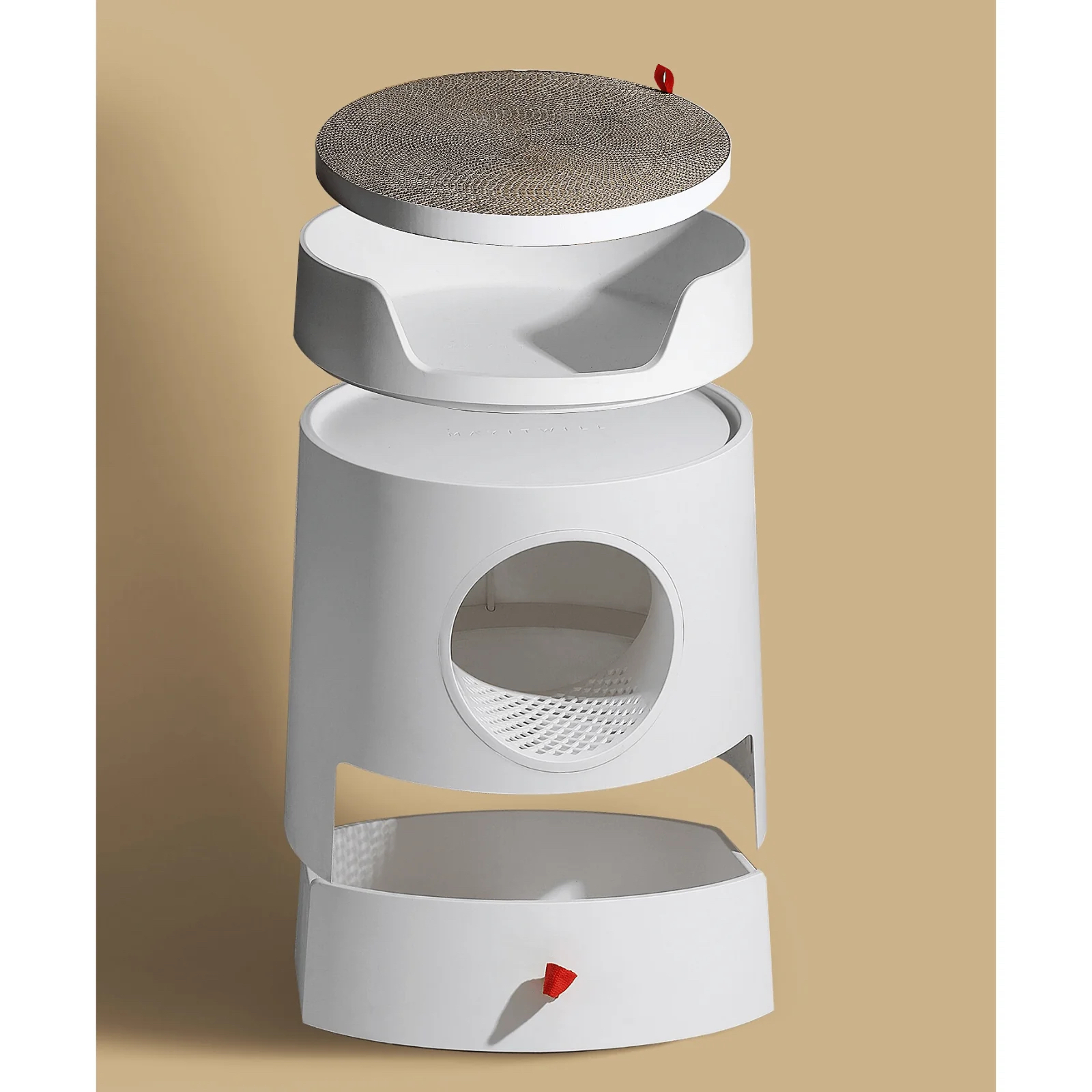 • Caixa de areia para gatos em forma de castelo com aparência minimalista e interior espaçoso para maior conforto.